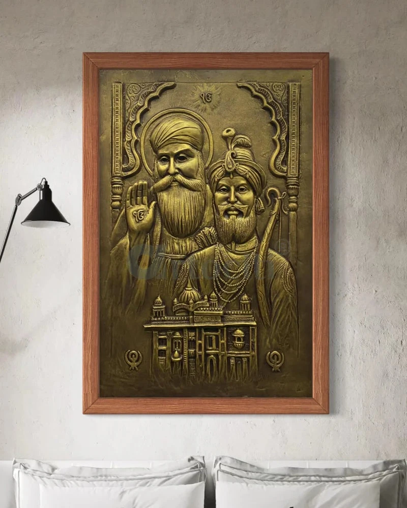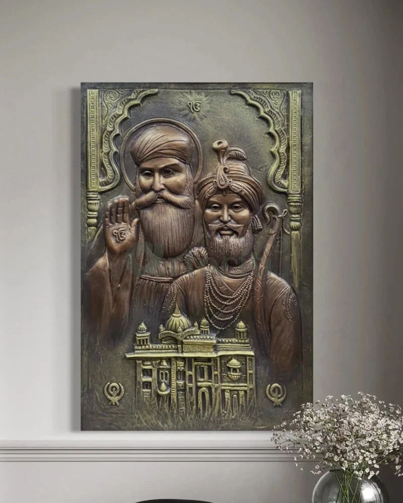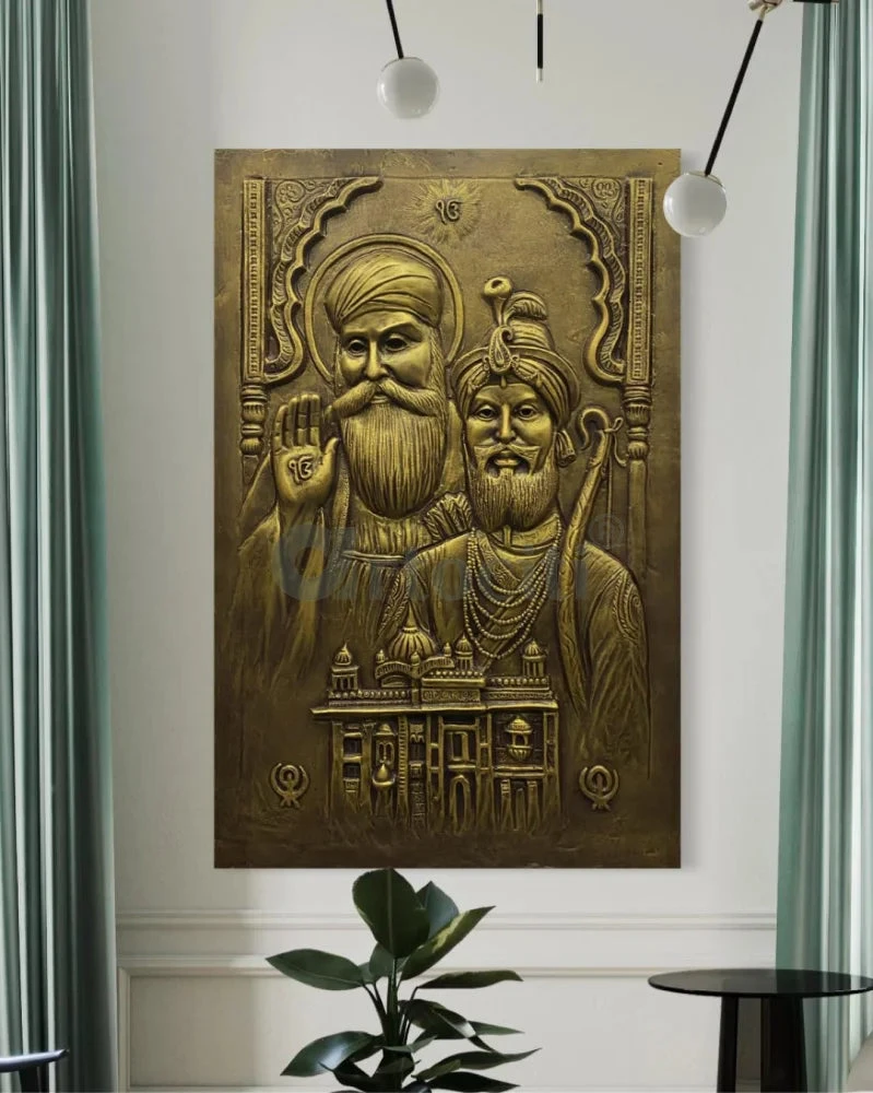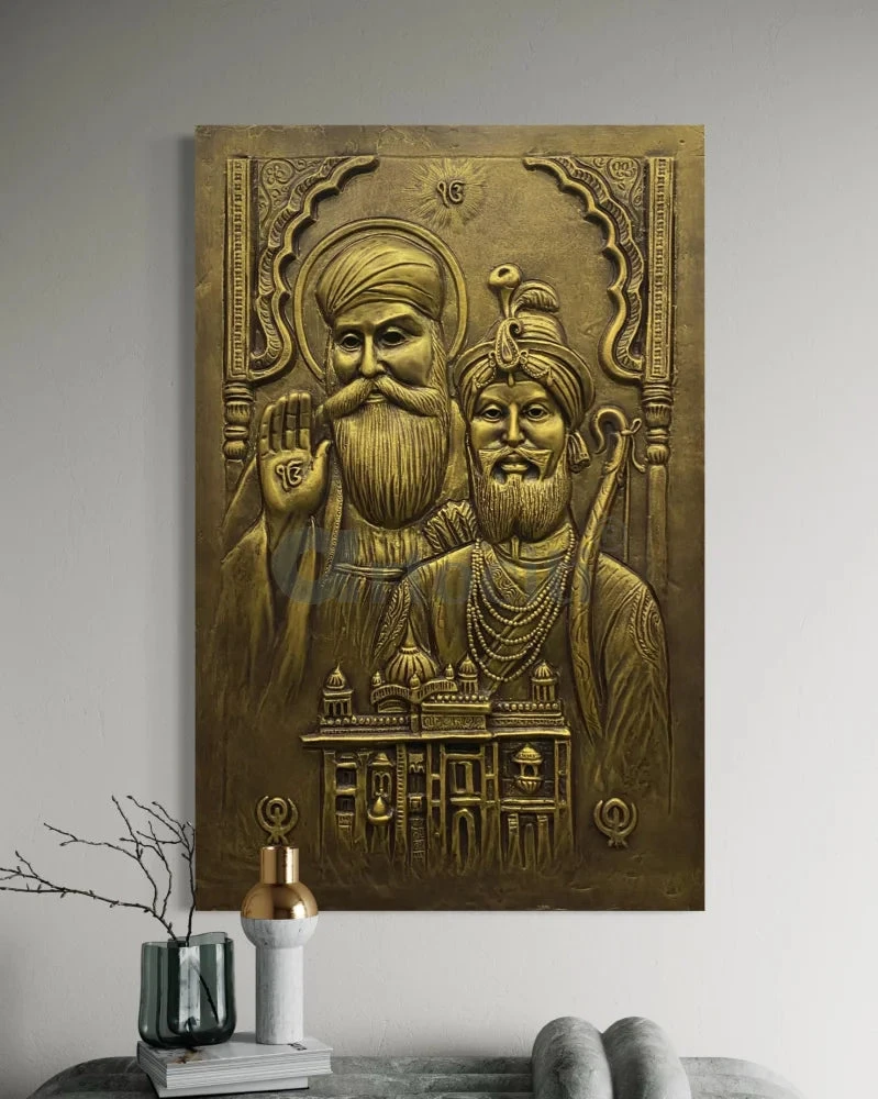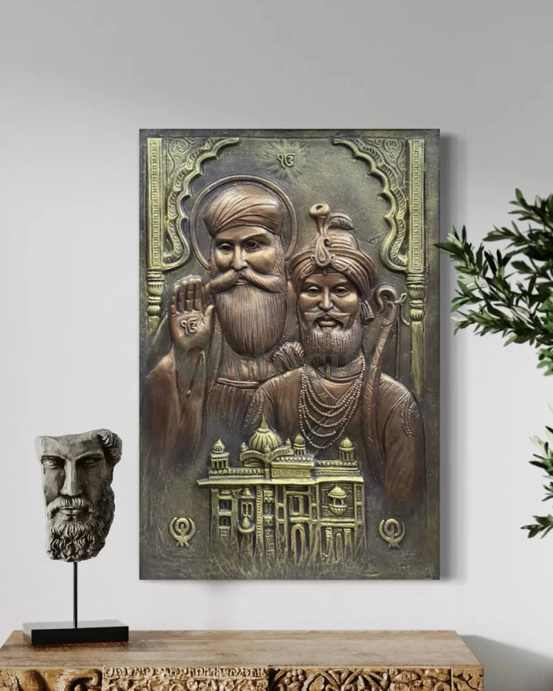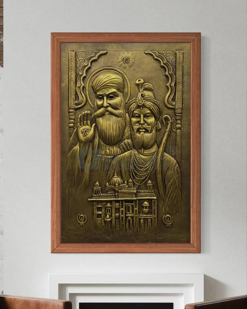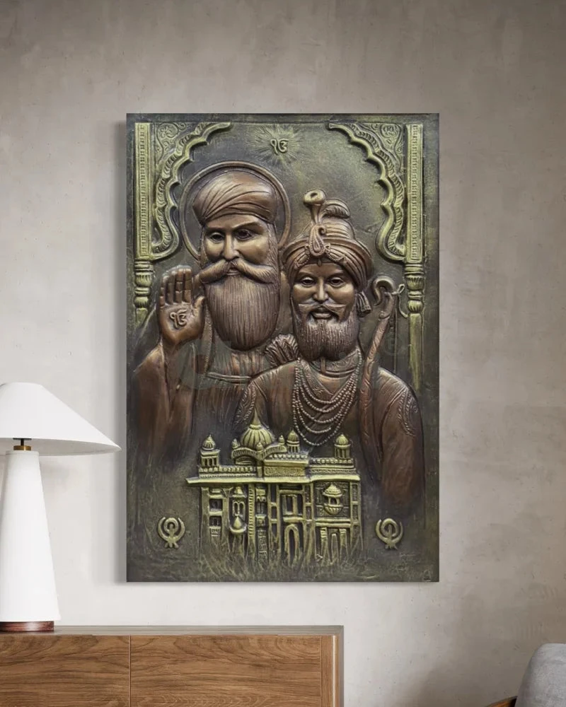 Invite the wisdom and grace of Guru Nanak and Guru Gobind Singh into your surroundings with this exceptional 3D relief mural. Let their teachings resonate through art that stands the test of time.