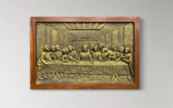 Crafted with unparalleled artistry, the dual-tone hues of golden and bronze exude a timeless elegance that adds a touch of spiritual radiance to any setting. The mural is gracefully framed in sheesham wood, elevating its aesthetic appeal.