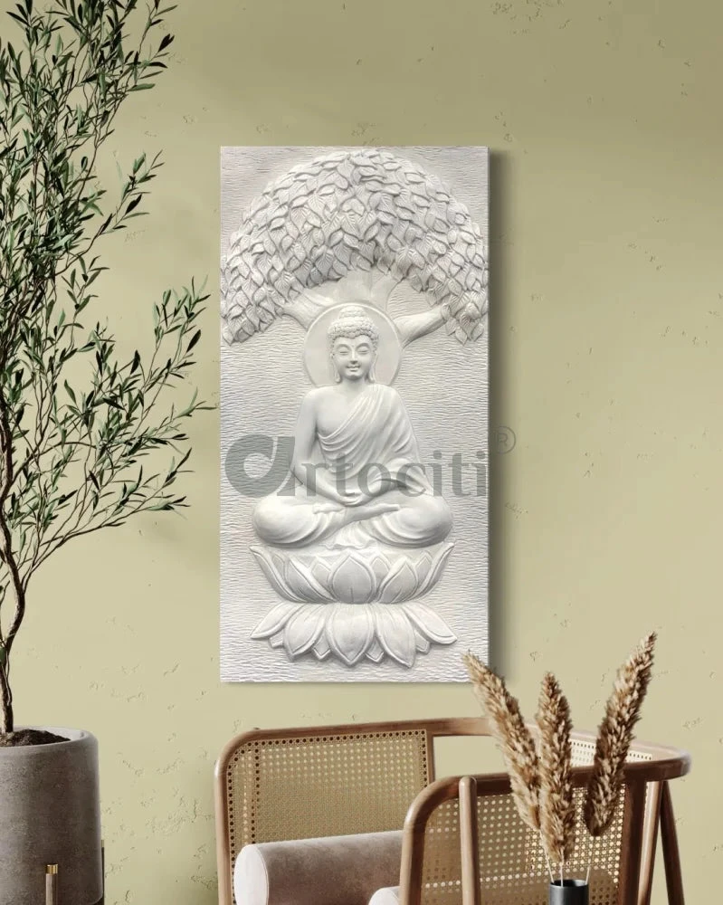 Transform your space into a haven of tranquility with our Buddha Under Tree 3D Relief Mural Wall Art. Crafted with meticulous detail, this unique masterpiece invites serenity into any room. Available in a striking size of 4 x 2 feet, choose from elegant golden, bronze, or pristine white hues to complement your decor. Unframed for versatile display options, this art piece effortlessly captivates with its depth and dimension. Elevate your ambiance and embrace the timeless beauty of Buddhist symbolism with this stunning wall art.