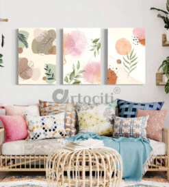 This set of 3 paintings is an exclusively designed wall decor inspired from mid century modern art that provides a dynamic boho chic feature to your living room decor. Furthermore, our wall art adds soul to your living space. This absorbing wall art with earthy hued colours will make your wall look vivid and aesthetic! It will look beautiful against both neutral toned walls and bright coloured walls. It can also be a great gift to loved ones or for festive gifting purposes.