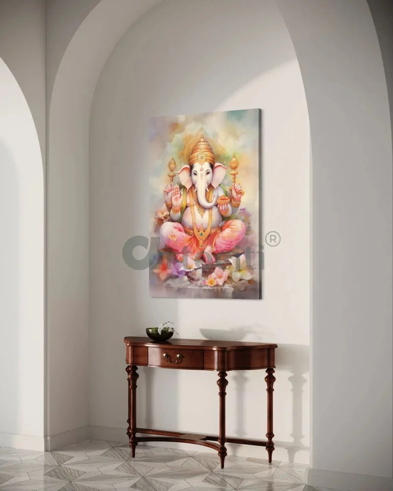 Product Description: Elevate your space with our exquisite Lord Ganesha Canvas Giclee Print, available in two sizes: 24×16 and 30×20 inches. This artwork captures the essence of spirituality and artistry in one. Crafted with precision, it’s a stunning addition to any room. The vivid colors and intricate details bring Ganesha, the remover of obstacles, to life. Made with high-quality materials, this print is durable and fade-resistant, ensuring it remains a centerpiece for years to come. Create a harmonious ambiance and invite blessings into your home with this unique piece of art.