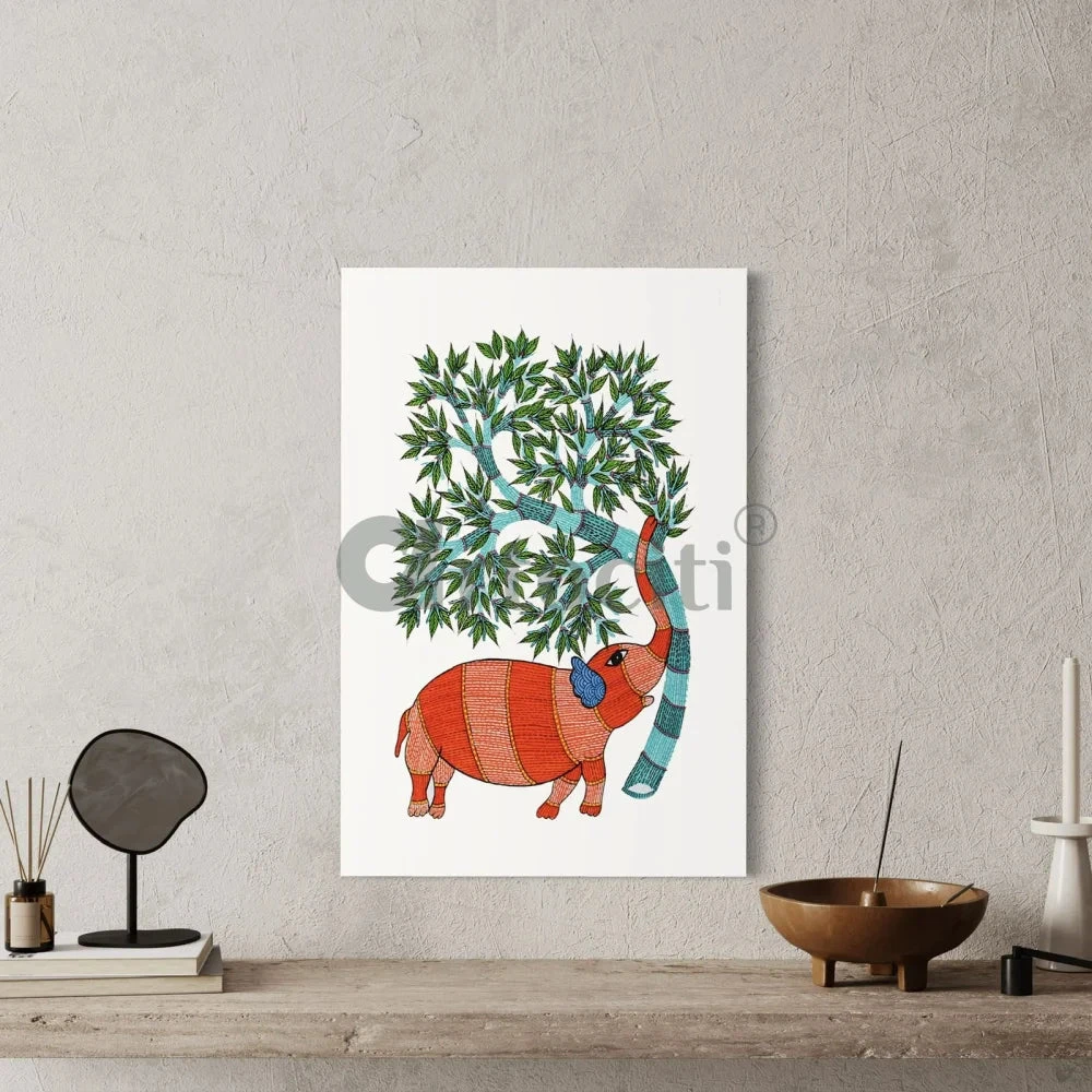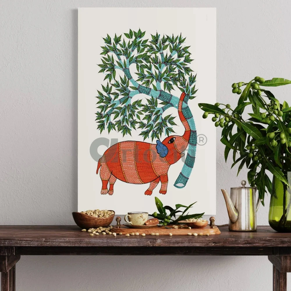 - Stunning Gond Painting: A mesmerizing portrayal of an elephant and tree, blending tradition and modern artistry.