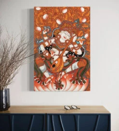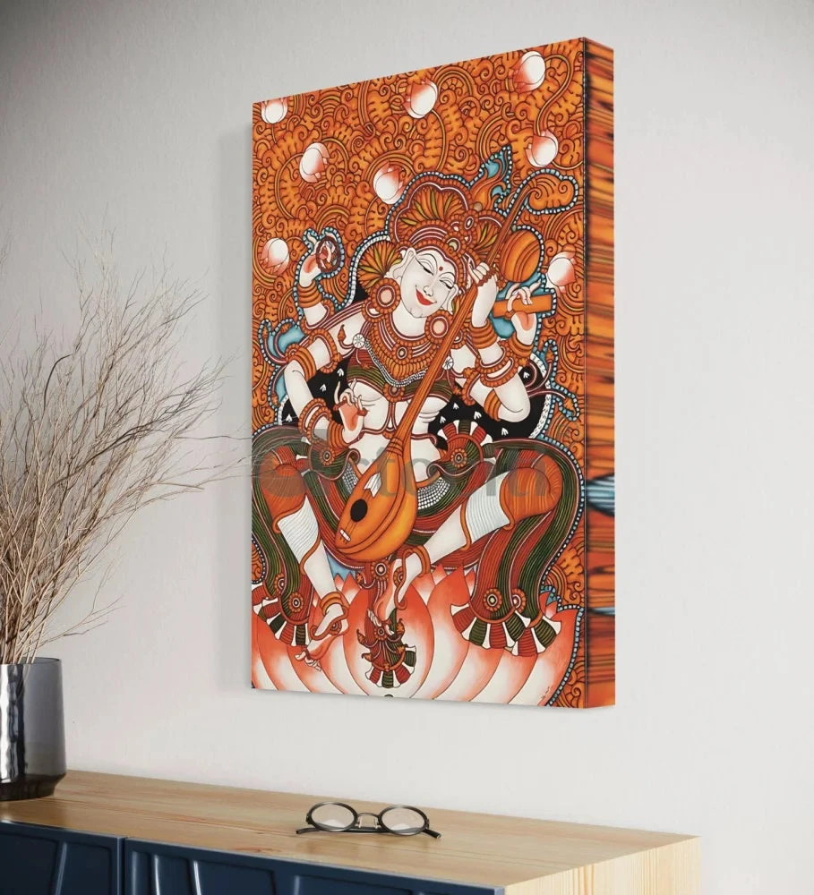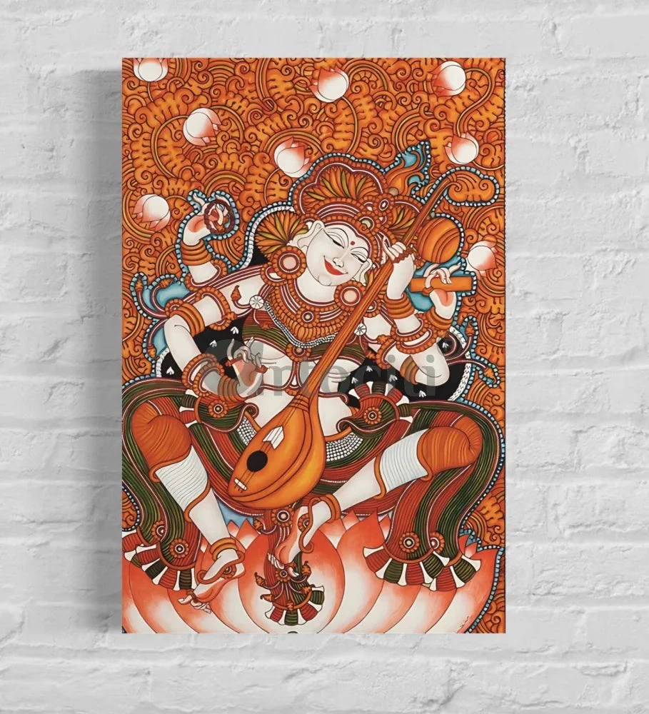 - Kerala mural canvas: Goddess Saraswati playing sitar