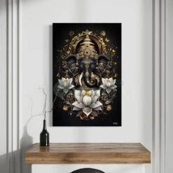 Elevate your home décor with the captivating Lord Ganesha Modern Abstract Canvas Giclee Print. This exquisite artwork, available in four versatile sizes, brings a touch of spiritual elegance to any space. Printed on premium 380 GSM canvas, this piece ensures long-lasting vibrancy and durability. Perfect for living rooms, bedrooms, or offices, this Ganesha art piece serves as a symbol of wisdom and prosperity.