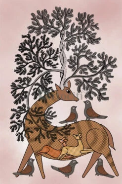 Large Size Gond Art Giclee Print Gallery Wrapped (Set Of 2)(Gond Painting Gp Gon 03)