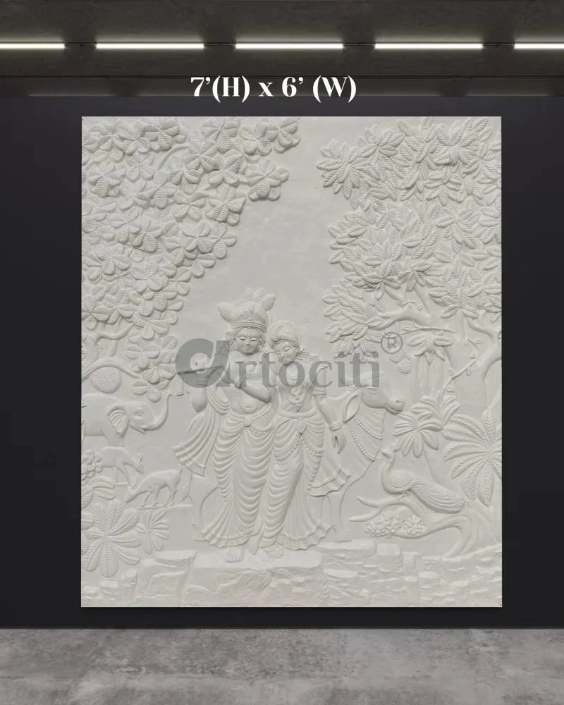 Add this stunning Krishna-Radha 3D Relief Mural Wall Art to your collection and let the sacred aura elevate your living space.