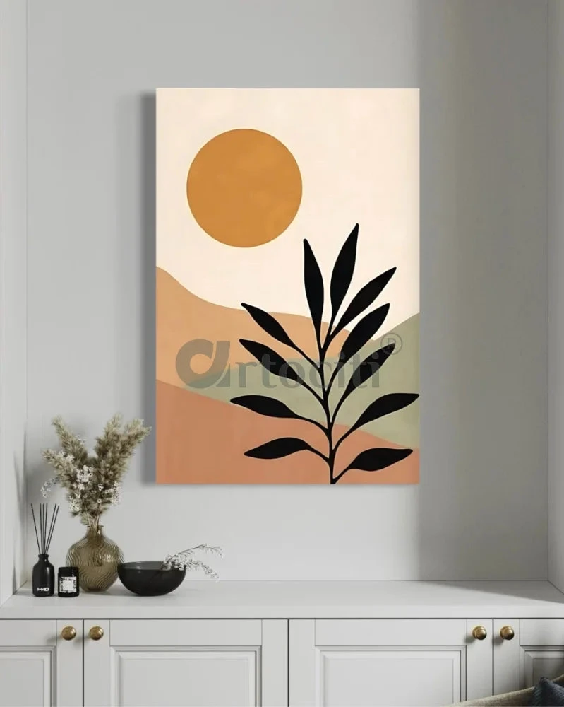 Transform your living space with the Sun and Floral Leaf Boho Chic Illustration Canvas Giclee Print, an artistic fusion of radiant sun motifs and elegant floral leaf patterns. Perfect for adding a touch of bohemian charm to any room, this stunning artwork is available in multiple sizes: 18×12, 24×16, 30×20, and 48×32 inches, and is printed on premium 380 GSM canvas. The vibrant colors and intricate design make this piece a standout addition to any decor, ensuring your walls are both captivating and stylish.