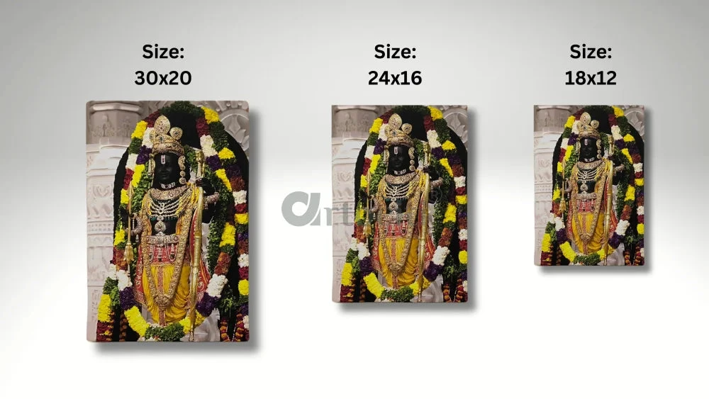 Elevate your space with our exquisite Ram Lalla Canvas Giclee Print. Available in 12×18 inches, 24×16 inches, and 30×20 inches sizes, this print is crafted on premium 380 GSM canvas. Bring the divine presence of Ram Lalla into your home with stunning detail and vibrant colors, perfect for any decor style.