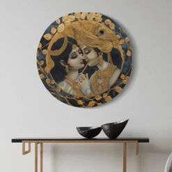 Immerse in the divine romance with our Round Duet Radhakrishna painting Canvas Giclee Print. Available in three sizes—16×16 inches (40.6×40.6 cm), 20×20 inches (50.8×50.8 cm), and 32×32 inches (81.2×81.2 cm)—this exquisite art is printed on 380 GSM canvas and mounted on round-shaped wooden plywood. Perfect for enhancing any space with a touch of spiritual elegance.