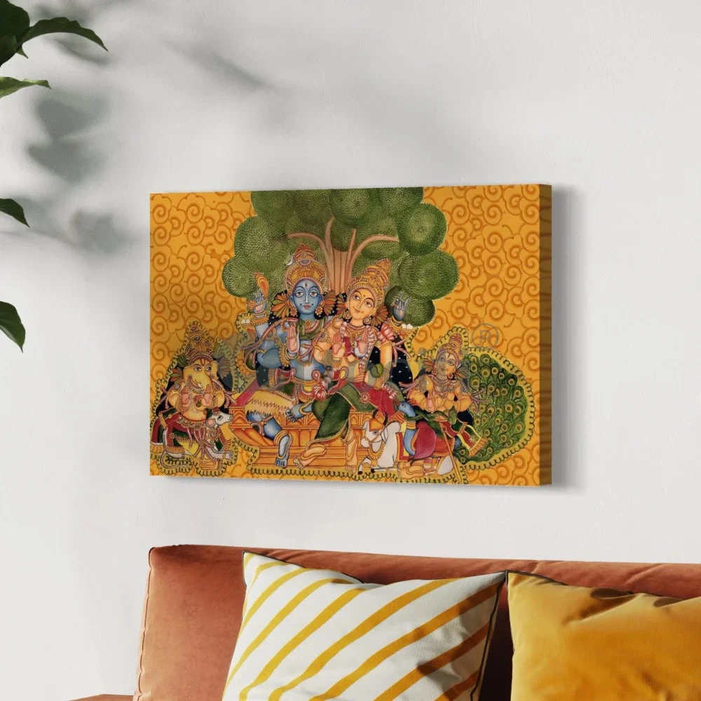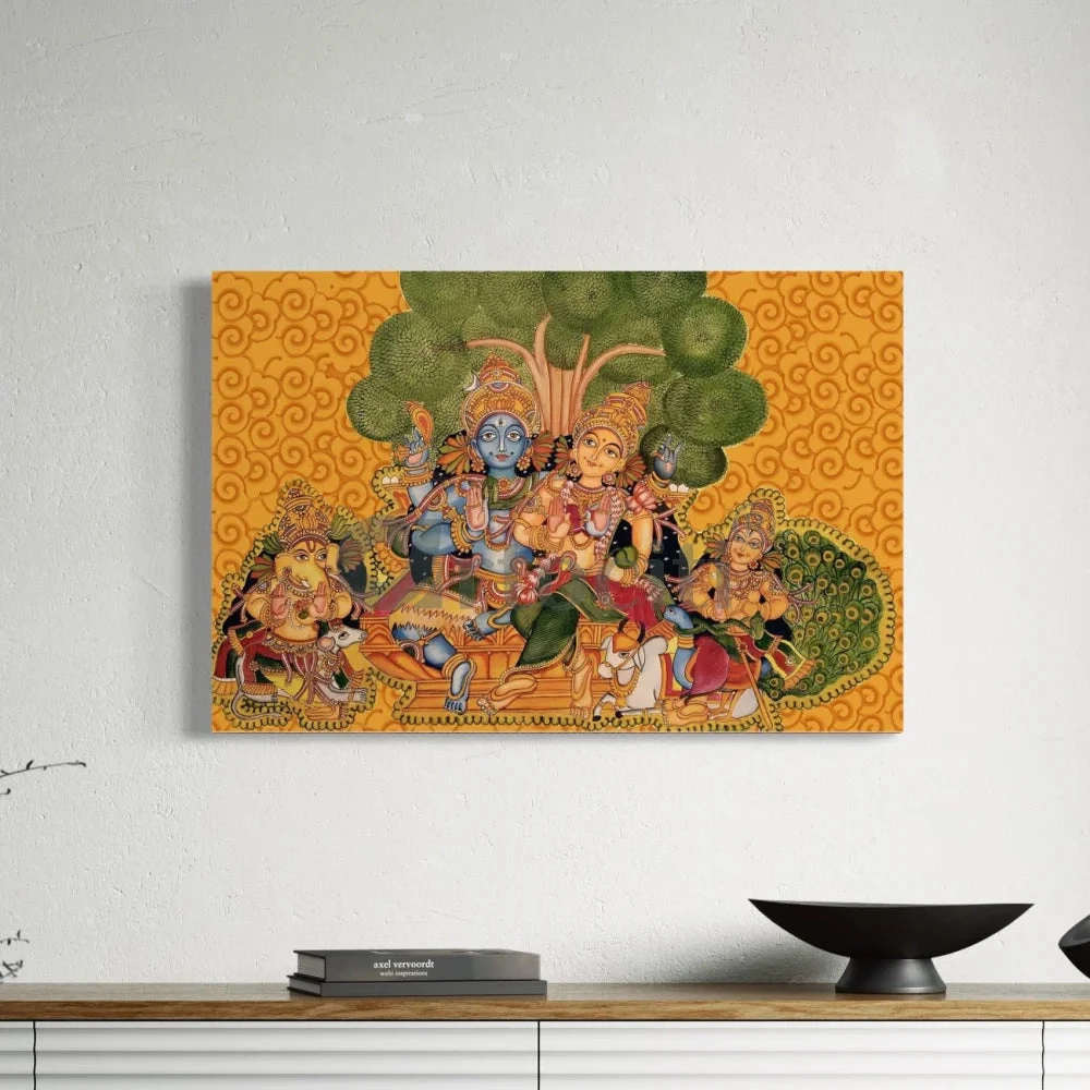 - Authentic Kerala Mural Art: A traditional depiction of Shiva, Parvati, and their family.
