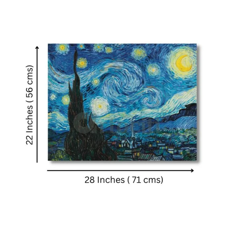 This canvas is work of renowned artist Van Gogh and the painting is one of his most famous painting “Starry Night”. This is giclèe print of the orignal artwork.
