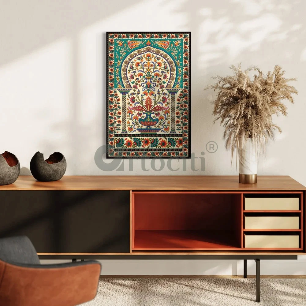 Elevate your space with our Tree of Life Persian Wall Art Canvas Giclee Print. This masterpiece is available in two sizes, 24X16 inches and 30×20 inches, ensuring a perfect fit for any room. Crafted on high-quality 380 GSM canvas, the vibrant colors and intricate details come to life, creating a mesmerizing visual experience. The Tree of Life design exudes timeless charm and cultural richness, making it a captivating addition to your decor. Bring sophistication and a touch of history into your home with this exceptional piece that transcends trends.