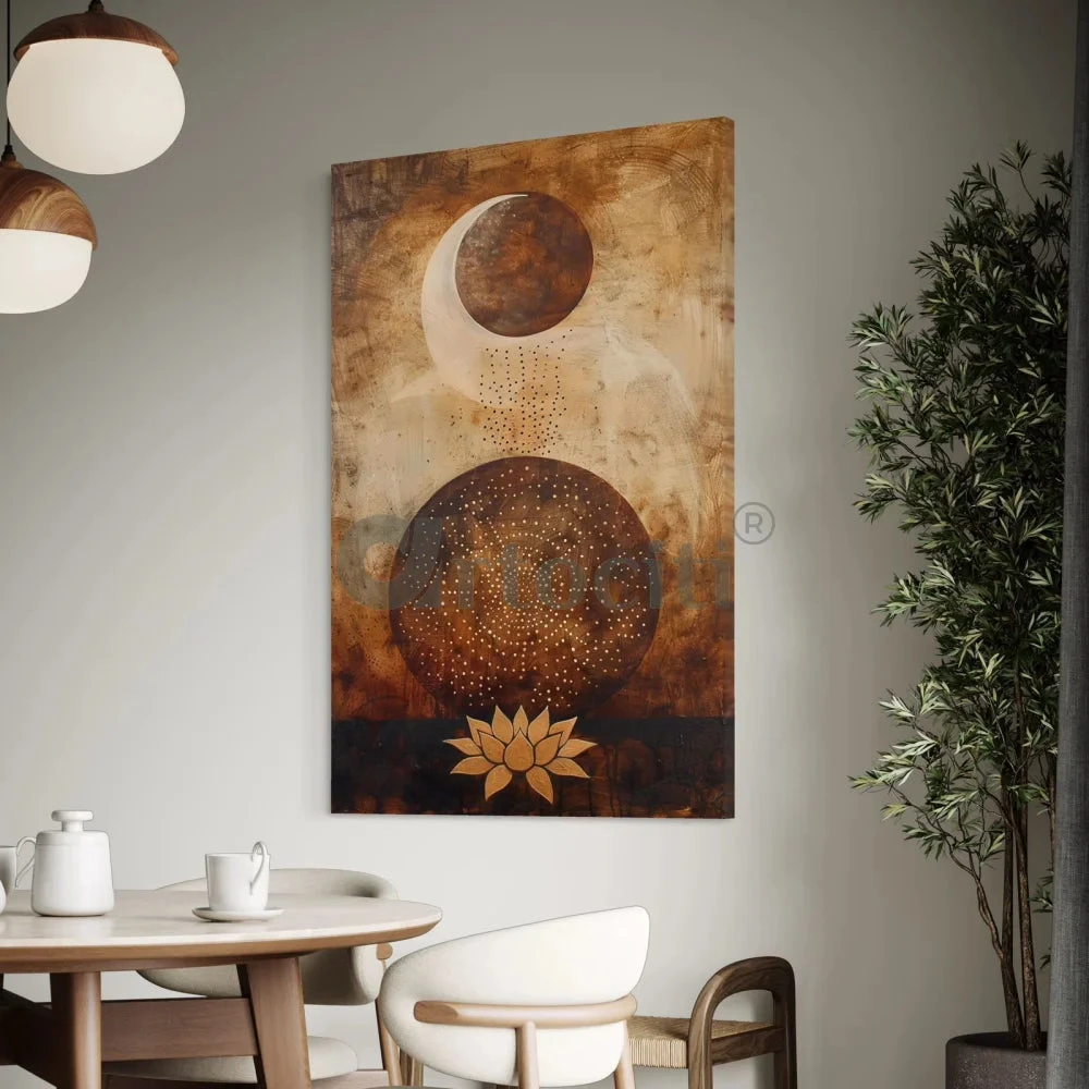 Enhance your decor with the “Vairagyam Moon Raising with Lotus” Modern Abstract Canvas Giclee Print. Available in three sizes: 18×12 inches (45.7×30.5 cm), 24×16 inches (61×40.6 cm), and 30×20 inches (76×50.8 cm) And 48X32 inches (124.5X81.2 cm), this artwork is printed on high-quality 380 GSM canvas. Its striking design and vibrant colors create a serene and sophisticated ambiance, perfect for any modern space.