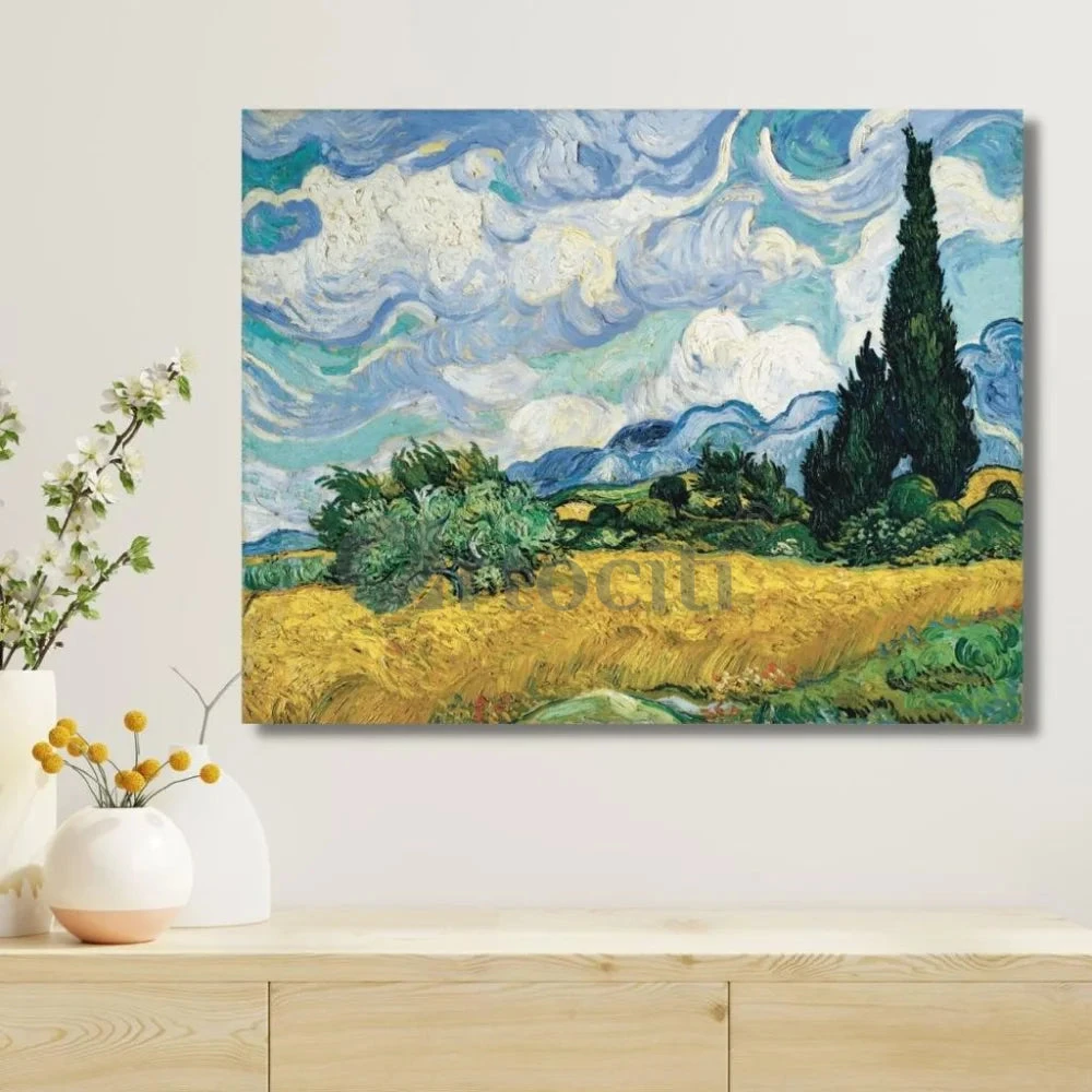 This canvas is work of renowned artist Van Gogh and the painting is one of his most famous painting “Wheatfield with Cypresses”. This is giclèe print of the orignal artwork.