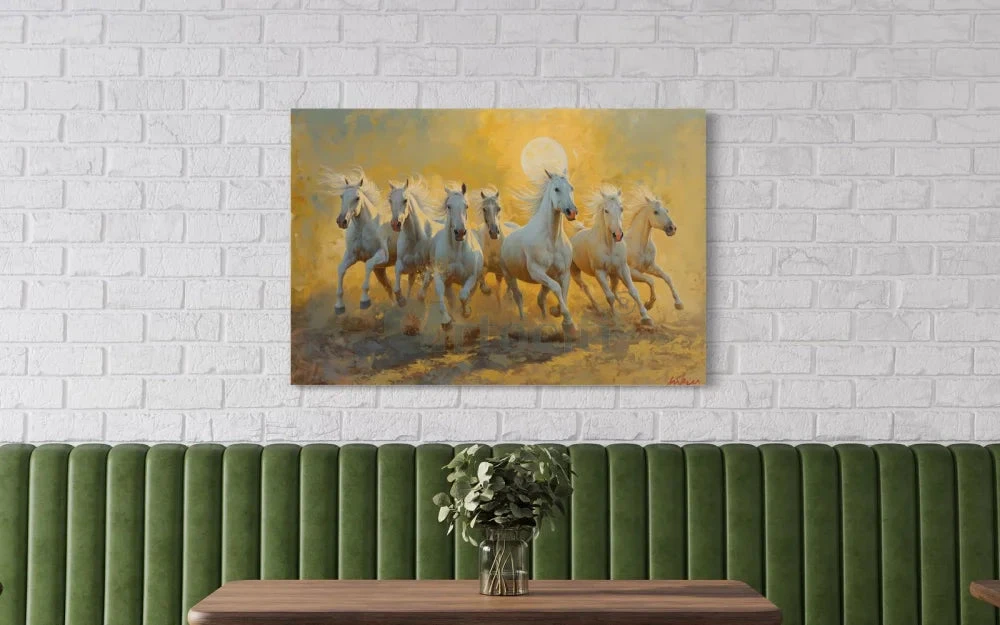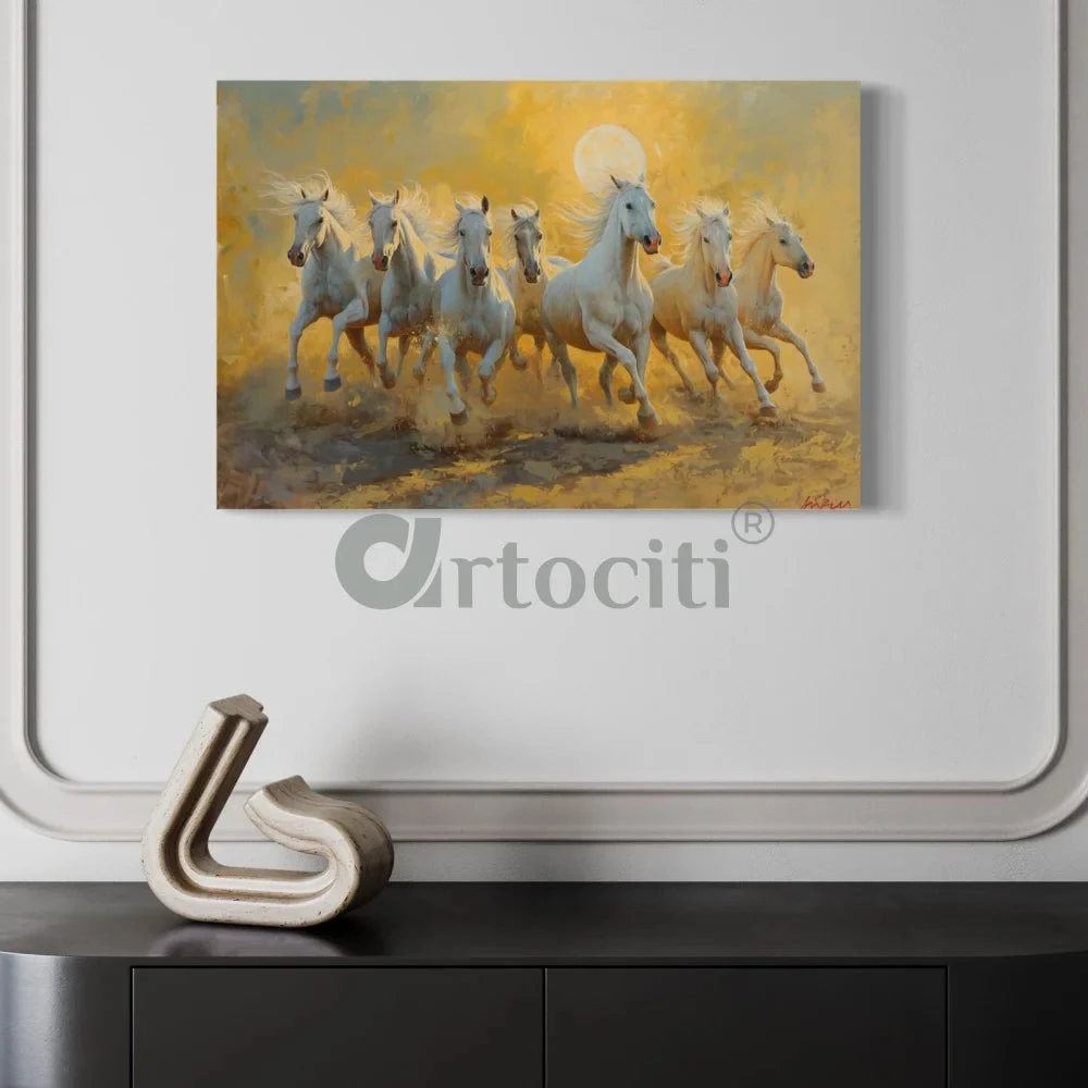 Transform your space with the White 7Horse Painting, a modern abstract canvas giclee print. Available in sizes 12×18, 16×24, 20×30, and 32×48 inches, this 380 GSM print captures the grace and power of a white horse in stunning detail. Perfect for adding a touch of elegance to any room, this artwork is a must-have for horse lovers and art enthusiasts alike.